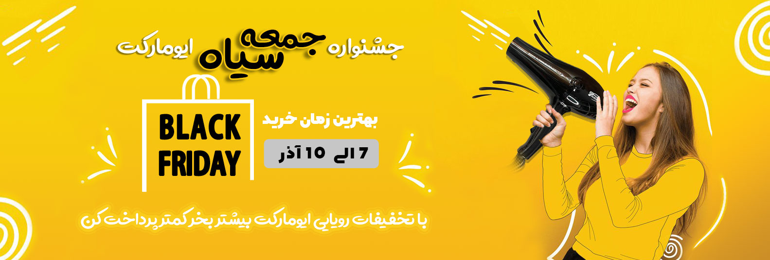 ایومارکت در فروش بلک فرایدی (Black Friday) تخفیفهای شگفتانگیزی را برای مشتریان فراهم کرده است. این رویداد که معمولاً در آخرین جمعه ماه نوامبر برگزار میشود، امسال در تاریخ 29 نوامبر 2024 خواهد بود. تاریخ بلک فرایدی در ایران سال 1403 مصادف با 9 آذر است. اما شما میتوانید محصولات تخفیفدار ایومارکت را از 7 الی 10 دی ماه تهیه کنید.